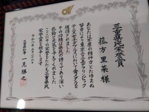 【テニス部】菰方里菜さん(2025スポ健卒)三重県 県民栄誉賞 受賞
